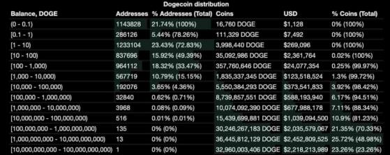 Список богачей Dogecoin. Источник: BitInfoCharts